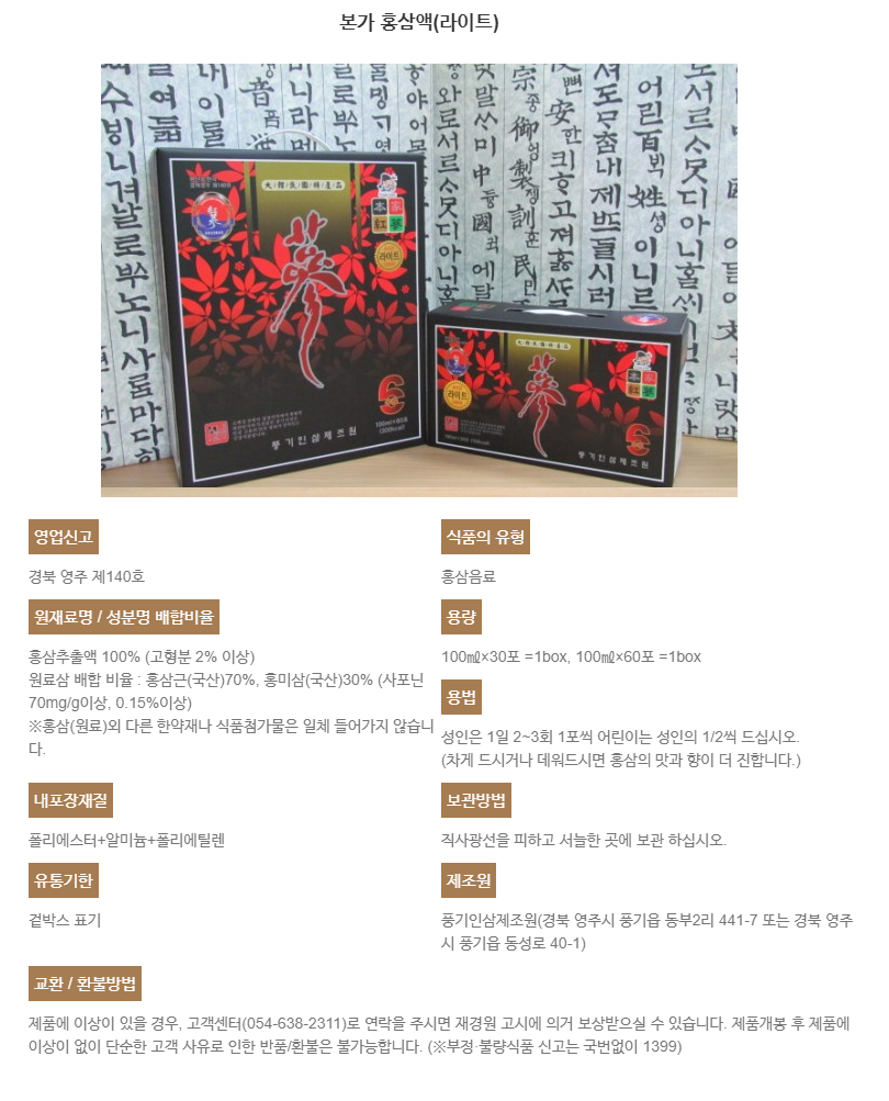 본가 홍삼액(라이트) 100ml × 60팩